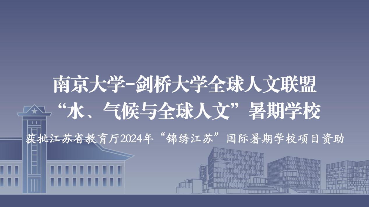 近日,南京大学-剑桥大学全球人文联盟“水、气候与全球人文”暑期学校获批江苏省教育厅2024年“锦绣江苏”国际暑期学校项目资助。2024年首届全球人文暑期学校将由南京大学全球人文研究院承办,剑桥大学全球人文联盟、南京大学艺术学院协办。