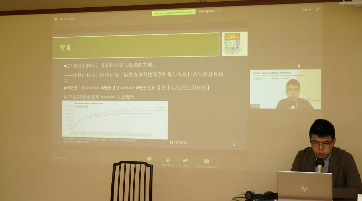 最后,香港大学美术博物馆高级藏品管理经理周政发表了题为《博物馆版权管理在数码世代中的复杂性分析—从香港法规条文角度出发》的主旨演讲,以香港《版权条例》等相关已确定的法规条文为切入点,分析了数码世代中博物馆版权管理工作的复杂性和特点,并辅助列举了一些实际操作中的问题,最终提出了一系列可行的解决方案。