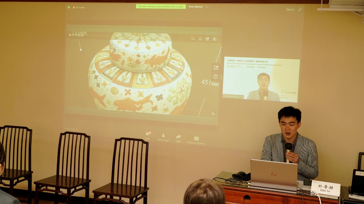 最后,来自东南大学的博士研究生于奇赫发表了题为《对于馆藏文物三维数字模型展示的思考—以国家一级博物馆网站为例》的主旨演讲,探讨了三维数字模型的流畅度和清晰度如何因硬件设备而成为一对不可调和的矛盾,并指出历史遗产在当下的目的是激发人的想象力和创造力,数码技术应该服务于建构超越时空环境的文化身份。