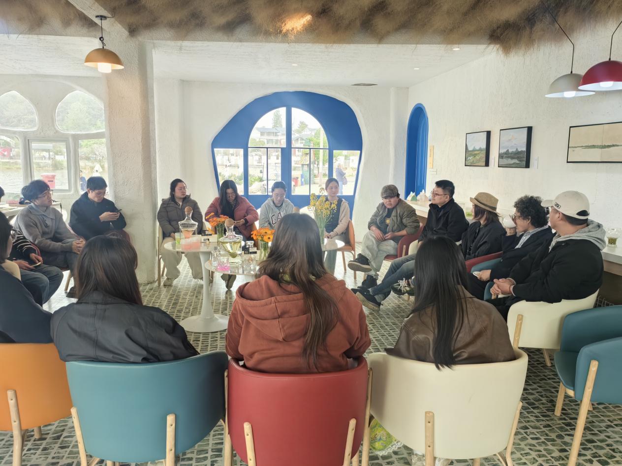 为促进同学们深入交流在贵州右二村写生的感受与经验,艺术学院四位老师、蒙安夕舍民宿主理人王庆能老师、南京大学艺术学院创业导师季蒙蒙老师以及 14 名研究生共同召开了贵州右二村写生师生交流会。