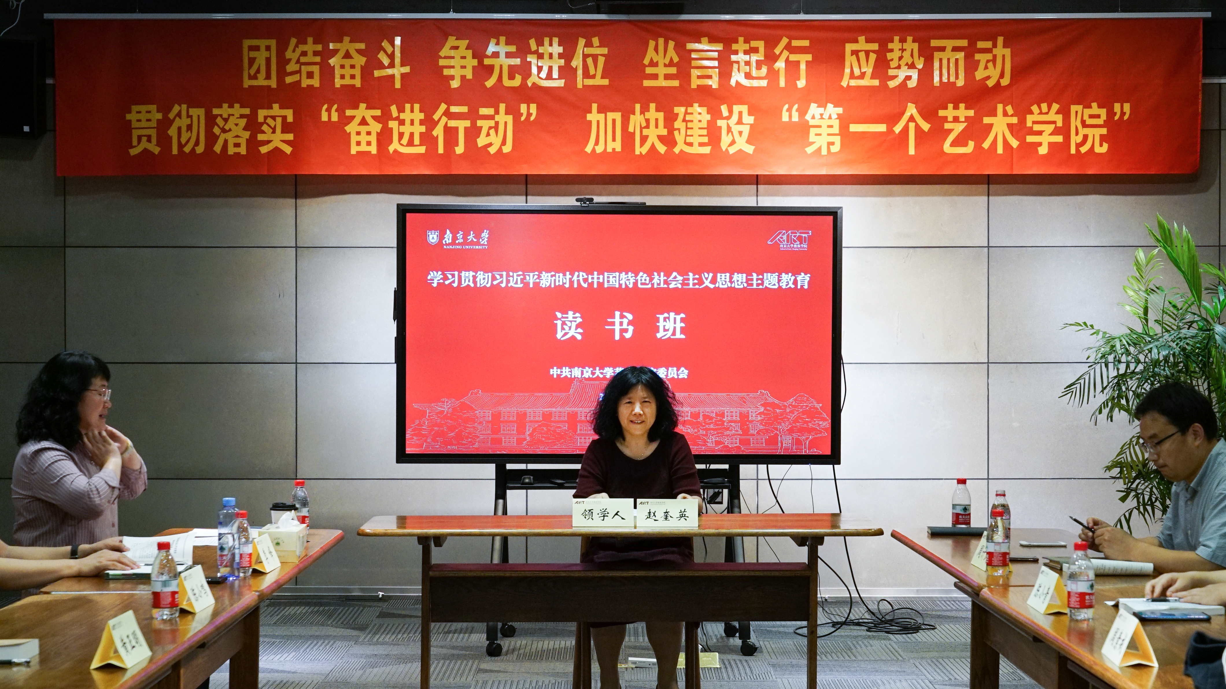 艺术学院学习贯彻习近平新时代中国特色社会主义思想主题教育读书班以处级以上领导干部为重点,参加人员包括院党政班子成员、院党委委员、部门负责人、支部书记、辅导员、德育导师,以党政班子成员领学、读书班成员分类研学、全体成员研讨交流的形式开展集体学习。