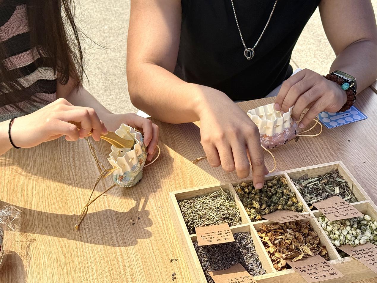 数种天然香料展开春日芳谱——清新的栀子花、淡雅的薰衣草与沁脾的柠檬草等静候邂逅。参与者可亲手将精选的干花与香料装入绸袋,调配独属自己的春日香气方程式。完成的作品既可悬挂衣襟,亦可置于枕畔,让天然植物芬芳整季萦绕。