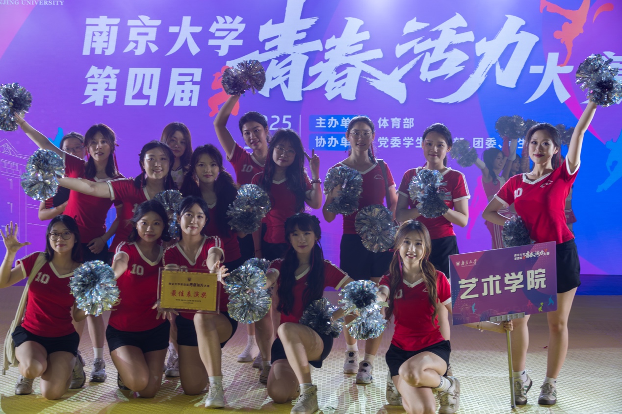 5月17日,在南京大学第四届青春活力大赛的激烈对决中,艺术学院啦啦操队以极具感染力的精彩表演,从23支参赛队伍中脱颖而出,一举揽获“最佳表演奖”,用舞台风采书写属于艺术学院团队的精彩答卷。这份荣誉不仅是对队员们辛勤练习的认可,更是对她们团结协作精神与青春活力的表彰。